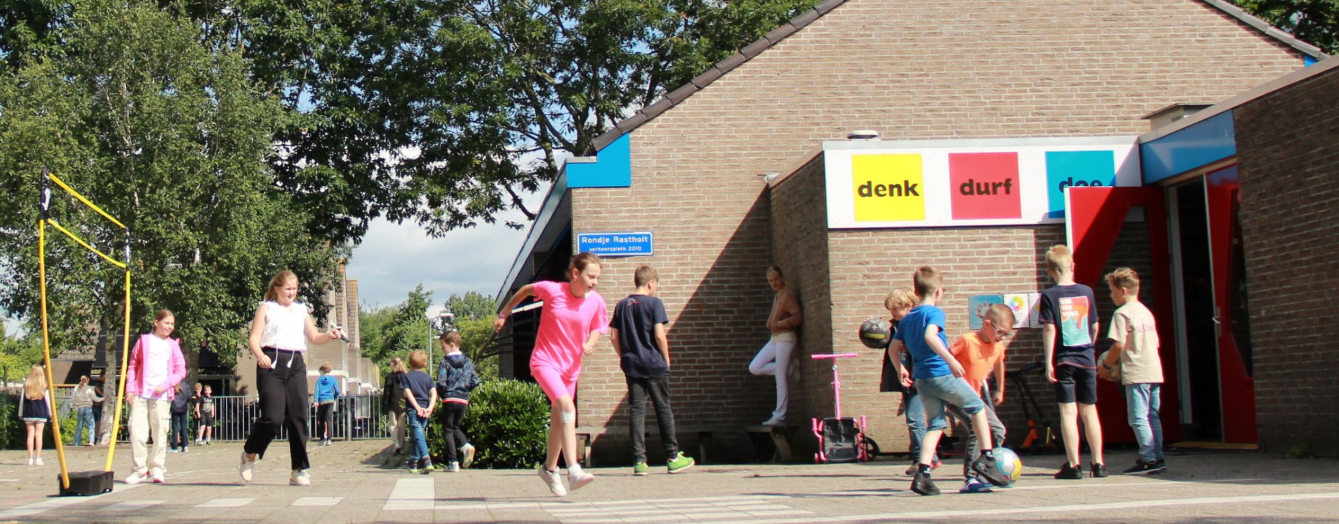 | Denk! Durf! Doe! Een toekomstgericht onderwijsaanbod! Op Het Rastholt willen we de kinderen goed voorbereiden op de samenleving. Hoe de samenleving er dan uit zal zien, kan niemand voorspellen. Wel dat we de kinderen moeten voorbereiden. Aansluiten bij de huidige trends en toerusten met vaardigheden gericht op de 21e eeuw. Dat betekent een kind opleiden dat nadenkt, durft te kiezen en kan handelen... Lees meer > |